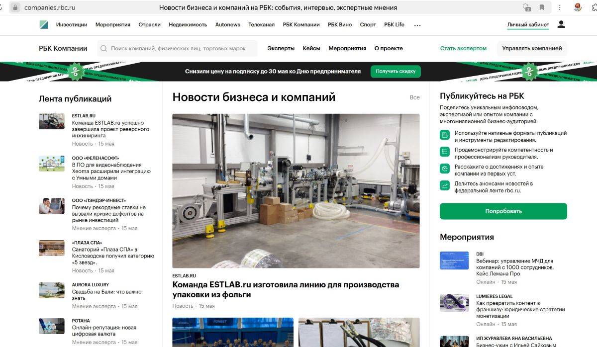 Теперь наша страница есть на сайте РБК по адресу: ESTLAB.ru на РБК Компании.