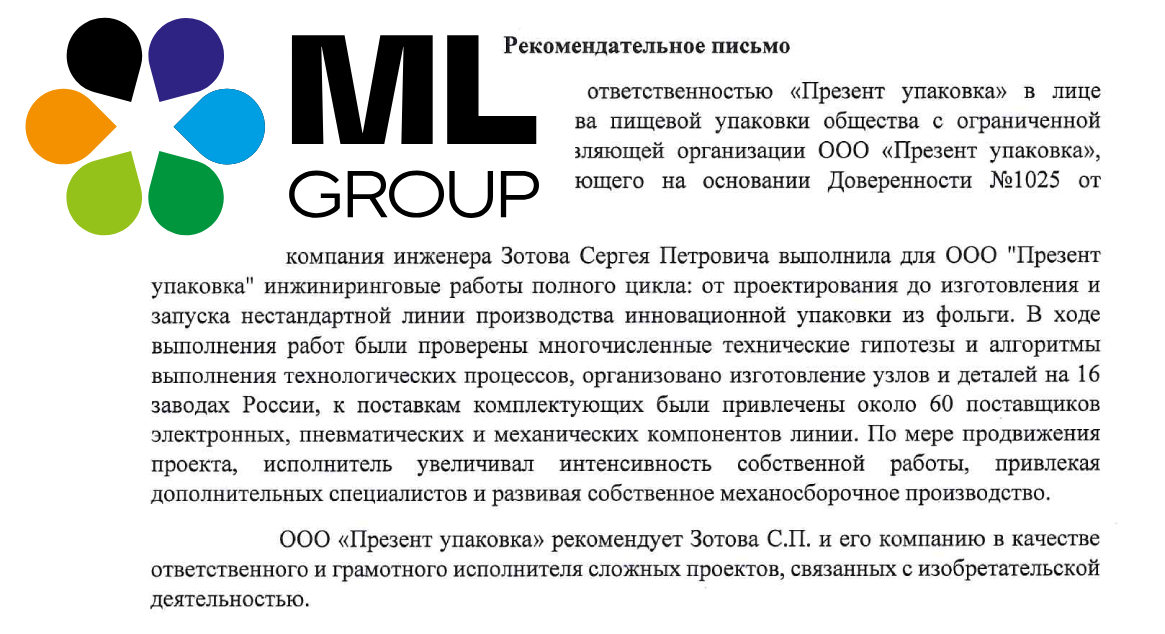 Получено рекомендательное письмо от компании «Презент упаковка»